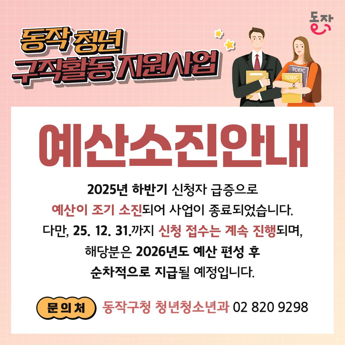 [공지사항] 2025년도 동작 청년 구직활동 지원사업 사업종료 안내